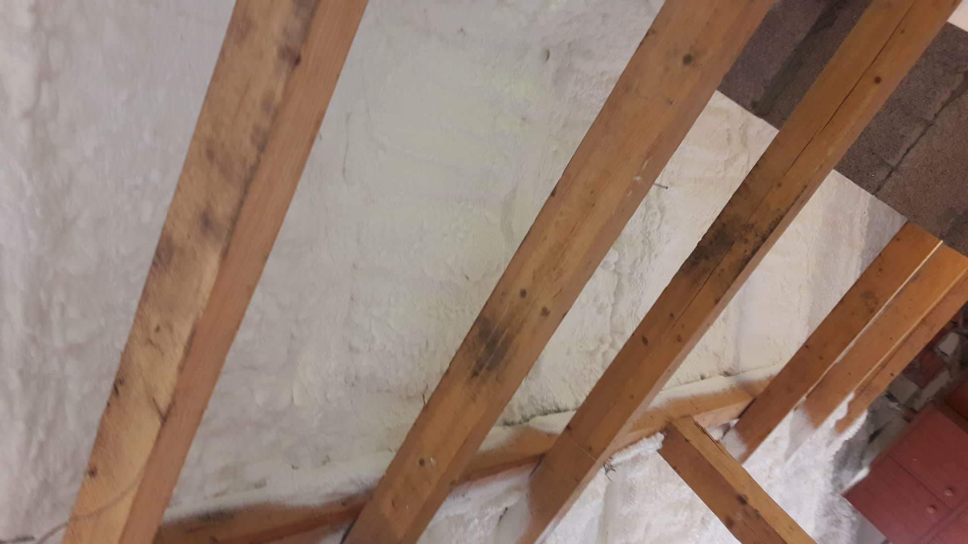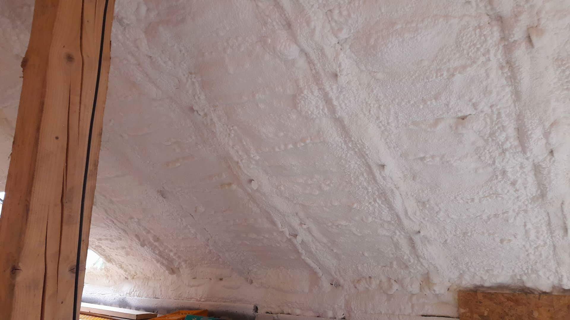 Docieplenie poddasza pianą PUR NG0808NF B2WA. Docieplona powierzchnia to 116m2. Właściciel domu wybrał 15cm grubości. Klasa palności piany E czyli niepalna, samogasnąca.