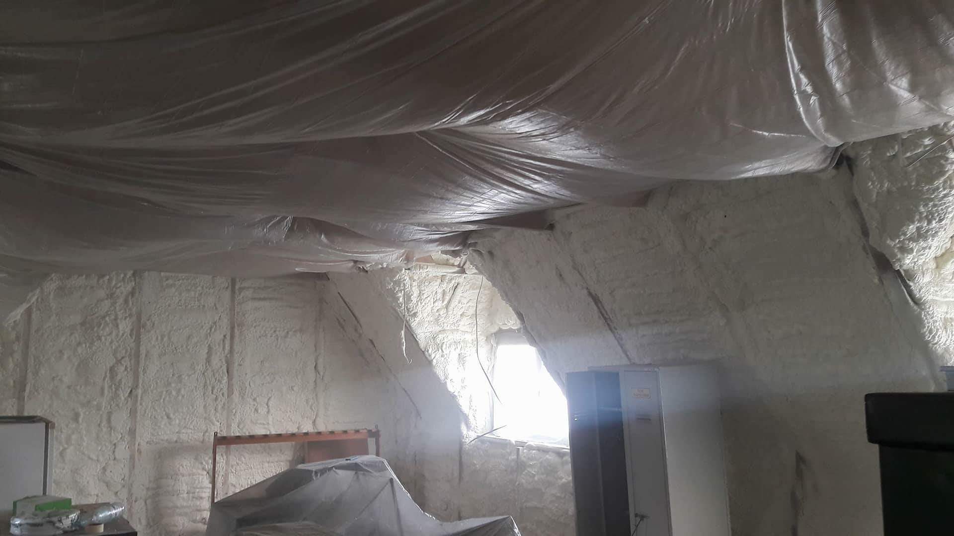 Docieplenie poddasza, stropu oraz ścian kolankowych pianą PUR w Kole Łowieckim CIETRZEW