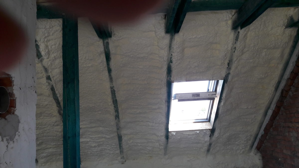 W miejscowości Drwinia ociepliliśmy dach o powierzchni 120 metrów kwadratowych na grubość krokwi. Czas wykonanej pracy to około 4 godzin łącznie z zabezpieczeniem przed zabrudzeniem okien dachowych.